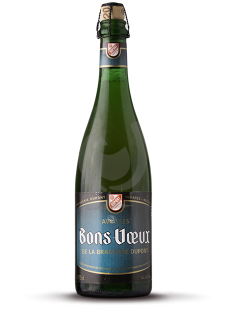 La Bons Voeux est une bière blonde de fermentation haute, refermentée en bouteille. Créée en 1970, cette bière était offerte en début d’année aux plus fidèles clients de notre brasserie (d’où son nom « Avec les bons vœux de la Brasserie Dupont »). Le succès de cette bière lui a valu de devenir une bière commerciale, tout en conservant son nom d’origine. Bien que très prisée, elle était brassée en quantités limitées, que les amateurs se réservaient de nombreux mois à l’avance. Bière d’un blond cuivré, aux arômes de houblons fins, la Bons Voeux est une bière de dégustation alliant moelleux, amertume et fruité. Longue phase de maturation avec houblonnage à cru lui confèrent des arômes et un goût typés et complexes. De la vraie refermentation en bouteille, qui peut se prolonger très longtemps dans votre cave, résulte une bière équilibrée et harmonieuse, aux arômes surprenants et complexes.Une des meilleures brasserie de Belgique ! Vers 1880 déjà, la bière de miel était une spécialité de la ferme-brasserie Rimaux-Deridder, à qui elle avait valu de nombreux prix lors de foires agricoles régionales. En 1920, Alfred Dupont acquiert la ferme-brasserie Rimaux-Deridder pour son fils Louis. Disparue pendant plus de 75 ans, la bière de miel a été recréée en 1997 pour vous être proposée cette fois en version biologique. L’étiquette actuelle est la reproduction fidèle de l’illustration utilisée à l’époque. La production de cette bière est contrôlée par Certisys® et la bière porte le label Biogarantie®.