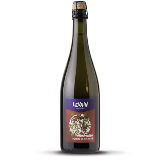 Cette bière est fermentée 6 mois et élevée en fût de chêne puis macérée avec des baies de poivre de Sichuan frais du Jura !