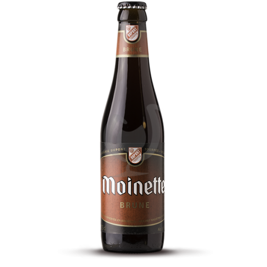 La Moinette Brune est une bière de fermentation haute, refermentée en bouteille. Amère et moelleuse à la fois, dotée d’un fruité léger. A la dégustation, ce sont surtout les arômes de malts spéciaux et de houblons fins qui dominent. A boire en accompagnement de vos repas tels que carbonnades et autres potées ou hochepots,… Elle accompagne idéalement le fromage Moinette Vieux de la brasserie. De la vraie refermentation en bouteille qui peut se prolonger de nombreux mois dans votre cave résulte une bière étonnante. Créée en 1986, cette bière connaît aujourd’hui un succès de plus en plus grand. Sa couleur insolite, brun légèrement foncé tendant même vers le roux ou le rouge feu, est le résultat du brassage d’un mélange de 5 malts.