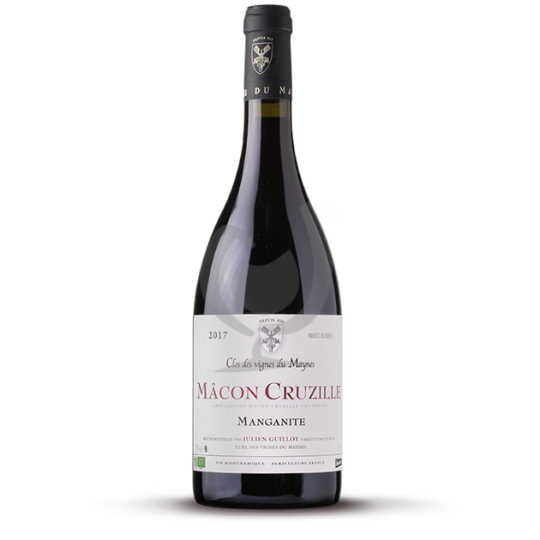 Notes de peaux de raisins, il devient de plus en plus floral à l'aération. Un nez évoquant de grands Pinot Noir. Bouche délicate, se montrant fraîche, soyeuse, sur un fruit pelliculaire très agréable. Manganite est un rouge de Gamay et possède la même expression calcaire que la cuvée Aragonite de Julien Guillot : Clos de vignes de 6 ha, plantées par les moines de l’abbaye de Cluny vers 910. Le sous-sol est de type BATHONIEN, milieu du jurassique, ce sont des calcaires durs que l’on retrouve dans toute la bourgogne. La particularité se trouve dans les calcaires à dalle nacrée, qui offrent de magnifiques cristaux de calcaire : Calcite-Aragonite. Le sol peu profond de 5 cm à 50 cm, est de type argilo-calcaire. Ce sont des limons argileux en colluvionnement sur une altération de limons purs très calcaires et riches en silice qui confèrent aux vins une belle minéralité. Rendement de 28 hl/ha / Agriculture biologique depuis 1954 et biodynamie depuis 1998. Vinification : Récolte manuelle avec triage sur pied et sur table si nécessaire. Pré-fermentaire à froid en cuve bois à tronc conique / Fermentation avec levures indigènes, sans so2 / Elevage sur lie pendant 11 mois sans soutirage / Mise en bouteille sous azote en septembre avec sans so2 ni filtration. Bouchon : Abel issus d’artisans Catalans, les chênes lièges poussent en montagne. 18 à 20 vinages par bouchon.