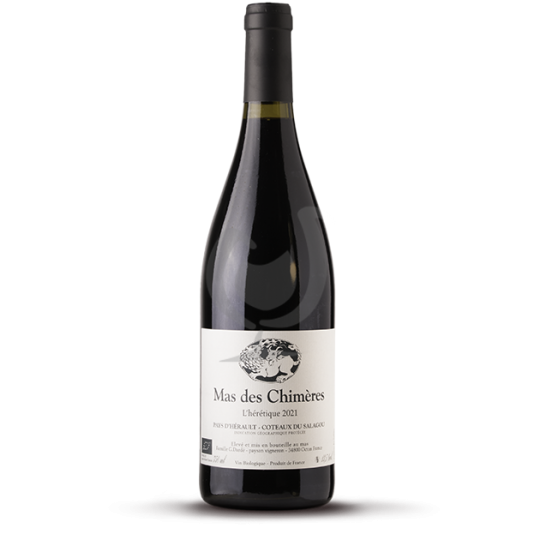 La cuvée “L’Hérétique” du Mas des Chimères est un vin rouge engagé et audacieux, élaboré à partir d’un assemblage dominé par 85 % de Merlot et environ 15 % de Cabernet Sauvignon et/ou Cabernet Franc, cultivés en agriculture biologique sur des sols argilo-sableux permien très anciens, riches en oxyde de fer avec des blocs de basalte volcaniques.