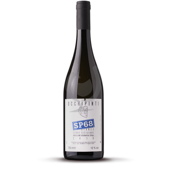 60% de Zibibbo (Muscat d'Alexandrie) et 40% d'Albanello pour un vin blanc de Sicile léger, aromatique et élégant. Une belle complexité se dégage avec des senteurs d'herbes méditerranéennes, de fleurs blanches, et de fruit (pamplemousse, litchis, de pêches blanches). SP68, le nom de la route où les paysans déjà il y a déjà trois mille ans quittaient la campagne avec les amphores, puis les tonneaux, et avec à l'intérieur le fruit de leur travail, l'effort, la joie. Issu d'une vigne plantée depuis des années 2000 à 280m d'altitude, terroir de calcaire et sable, culture biologique, macération pelliculaire de 15 jours, fermentation en levures indigènes, élevage 6 mois en cuve ciment et 1 mois en bouteille. Parfait pour l'apéritif, à aérer plusieurs heures voir 1 jour à l'avance quand le millésime est jeune ou à accorder sur des fromages italiens ou poissons !