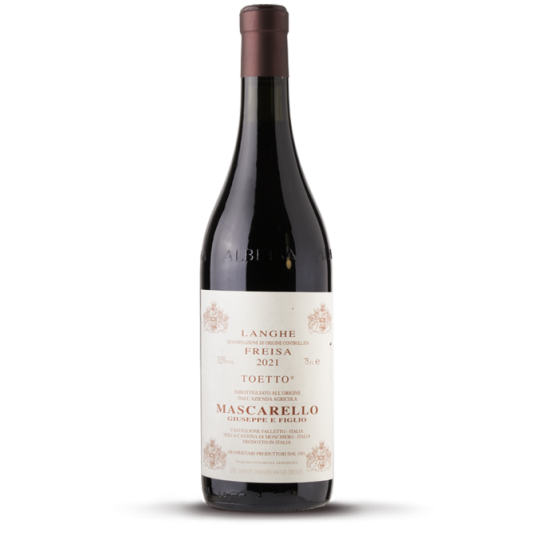 Le Langhe Freisa Toetto de Giuseppe Mascarello est un vin rouge vibrant issu du cépage Freisa, une variété locale souvent comparée au nebbiolo. Ce vin, léger et frais, révèle des arômes de petits fruits rouges, de fleurs et d'épices. En bouche, il est délicat avec des tannins fins et une bonne acidité, offrant une structure modérée et un côté juteux agréable. Ce vin se distingue par sa fraîcheur et sa vivacité, tout en étant d'une grande souplesse. Le Toetto est un excellent exemple de l’expression pure du terroir du Piémont, parfaitement équilibré, à la fois accessible et élégant.