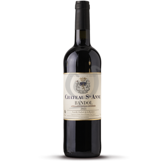 La cuvée Bandol rouge du Château Sainte Anne, élaborée sur les coteaux argilo‑calcaires exposés sud‑est proches de la Méditerranée et bénéficiant de l’influence maritime et du mistral qui favorisent une maturation lente et équilibrée des raisins, est un assemblage dominé par le Mourvèdre (60 %) complété par Grenache et Cinsault cultivés en agriculture biologique et vendangés à la main, vinifié de façon traditionnelle avec fermentation sur levures indigènes suivie d’un élevage très long (22 mois) en foudres de chêne neutres, donnant à la dégustation un vin de belle garde aux arômes complexes de fruits rouges et noirs, d’épices et de notes évoluées (truffe, cuir, réglisse), avec des tanins soyeux et une structure profonde qui s’épanouit avec quelques années de bouteille.
