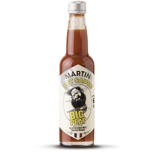 La sauce Big Peat est le fruit d'une collaboration entre la marque Big Peat, un whisky emblématique de l'île d'Islay en Écosse. Ce whisky est reconnu pour ses arômes tourbés intenses, résultant de l'utilisation de malt séché à la fumée de tourbe. En associant ce spiritueux aux meilleurs crus de piments de France et du monde, les Sauces Martin ont créé une sauce qui marie tradition écossaise et cuisine française.