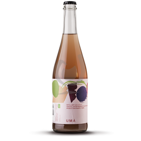 Umà PET'NAT Rosé est une boisson pétillante sans alcool, inspirée des vins pétillants naturels. Élaboré à partir de verjus et de jus de raisin blanc du Périgord (cépages Sémillon, Sauvignon, Ugni Blanc), ce pétillant est infusé avec un trio de fruits rouges, offrant une alternative raffinée aux vins pour l'apéritif ou le dîner.