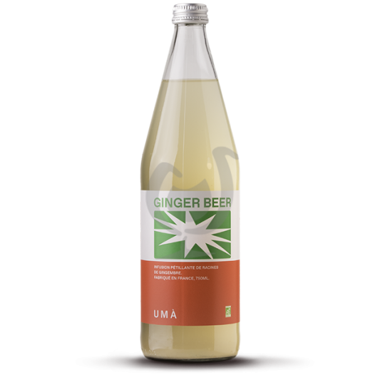 La Ginger Beer Bio d'Umà est une boisson pétillante artisanale, élaborée en France, qui revisite la recette traditionnelle jamaïcaine en proposant une infusion de racines de gingembre biologique.