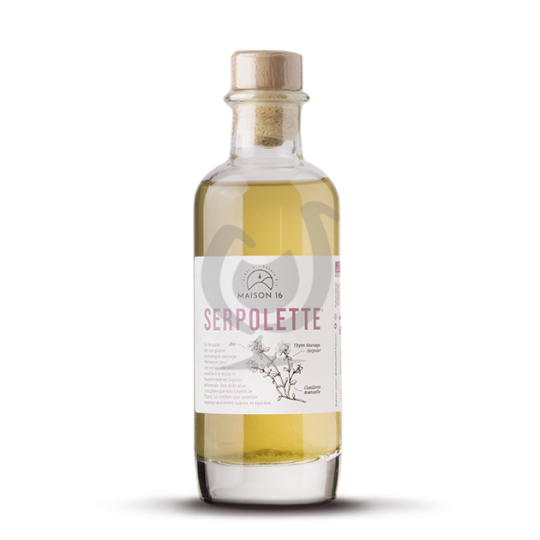 Maison 16 a voulu ici mettre à l’honneur une plante aromatique sauvage… et c’est un joli bijou ! Le Serpolet est le thym sauvage que l’on retrouve dans leur région. Après avoir cueillies à la main les feuilles et fleurs violettes, il est transformé en liqueur. Cette plante aromatique apporte plus de complexité que son cousin le thym avec des notes épicées et herbacées. Cette pépite à 25,6% Vol, est un vrai délice ! À découvrir en digestif pur ou en cocktail. Suggestion cocktail : SAINTÉ SPRITZ : Dans un verre rempli de glaçons, 4 cl de Serpolette MAISON 16, 10 cl de vin pétillant, un trait d’eau gazeuse et une rondelle d’orange ! Maison 16 produit, embouteille et conditionne par leur propre soin. Ils souhaitent mettre en avant les ressources naturelles de leur territoire par la cueillette sauvage réalisée exclusivement à la main. Ils produisent ainsi des liqueurs via un procédé naturel, la macération. Les nuances vertes sont apportées par le pigment de la chlorophylle, présente naturellement dans les végétaux. La couleur des liqueurs s’estompe avec la luminosité et le temps, sans en altérer le goût. Ils n'ajoutent pas de colorants et les spiritueux sont toujours élaborés sans additifs, sans arômes ajoutés et sans conservateurs. La production et l’embouteillage sont réalisés en petites séries à la main. Ils produisent donc des boissons naturelles de qualité. Des Liqueurs vraies et vivantes !