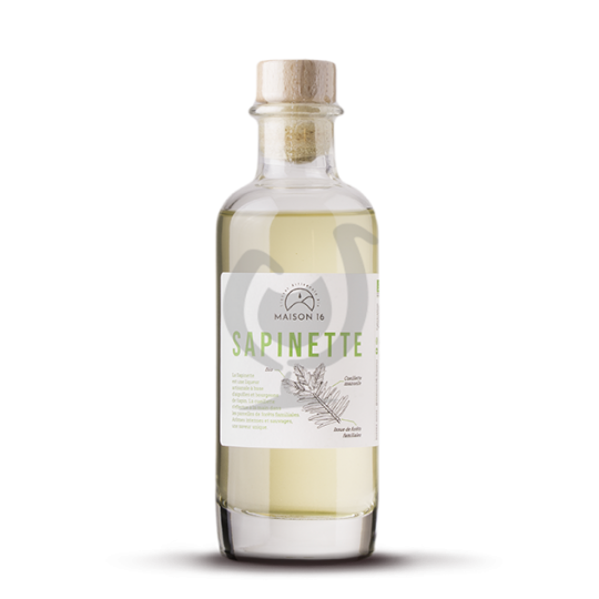 Le démarrage de MAISON 16 se concrétise par la création d’une première liqueur à base d’aiguilles et de bourgeons de sapin, la Sapinette. Une petite fraîcheur qui vous transporte en forêt ! La récolte s’effectue à la main dans les parcelles de forêts familiales en Haute Loire. La Sapinette MAISON 16 est à 28,2% Vol. Elle se distingue par les saveurs du sapin, un goût de sève et une pointe naturelle d’agrumes. Elle s’apprécie fraîche en digestif, ou en cocktail. Suggestion cocktail : SAPI TONIC : Dans un verre rempli de glaçons, 4 cl de Sapinette MAISON 16, 2 cl de jus de citron, Allonger de tonic avec un quartier de citron. Maison 16 produit, embouteille et conditionne par leur propre soin. Ils souhaitent mettre en avant les ressources naturelles de leur territoire par la cueillette sauvage réalisée exclusivement à la main. Ils produisent ainsi des liqueurs via un procédé naturel, la macération. Les nuances vertes sont apportées par le pigment de la chlorophylle, présente naturellement dans les végétaux. La couleur des liqueurs s’estompe avec la luminosité et le temps, sans en altérer le goût. Ils n'ajoutent pas de colorants et les spiritueux sont toujours élaborés sans additifs, sans arômes ajoutés et sans conservateurs. La production et l’embouteillage sont réalisés en petites séries à la main. Ils produisent donc des boissons naturelles de qualité. Des Liqueurs vraies et vivantes !