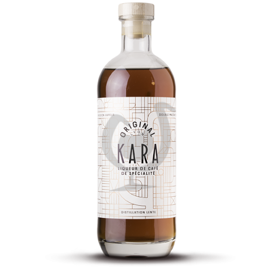 La liqueur Original KARA est une recherche autour de grands crus de café. La distillerie a ici souhaité représenter l’ensemble du fruit : le grain torréfié, le grain vert et le cascara, elle est la pulpe autour de la graine. Cette grande liqueur est l’assemblage de beaucoup de techniques pour extraire au maximum le goût du café et sa texture en bouche. Après une sélection des meilleurs cafés, une macération va venir extraire la profondeur la puissance du café noir. Ensuite une infusion vapeur va apporter de la fraîcheur, l’équilibre et la texture avec beaucoup de complexité aromatique. Le distillat est réduit avec de l’eau distillée et une macération de deux grands crus de café puis transformé en liqueur fine et expressive. En résulte une liqueur, parfaite pour de la dégustation sec et du cocktail.