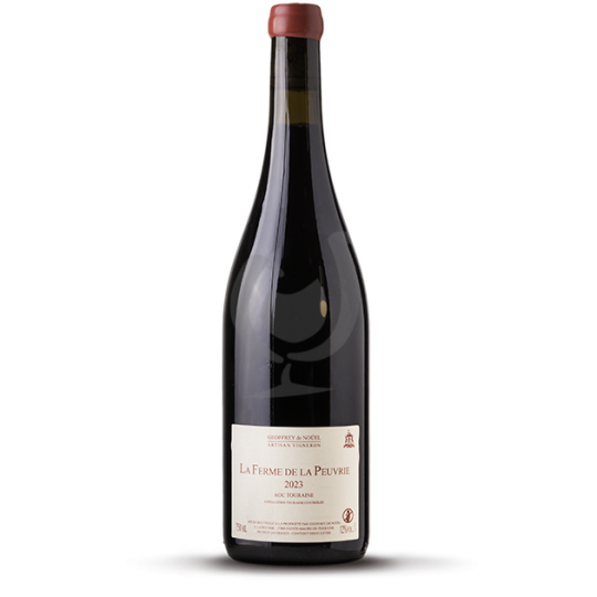 La cuvée La Ferme de la Peuvrie du Domaine Geoffrey de Nouel est un Cabernet Franc issu d’une parcelle située sur le coteau calcaire de la Peuvrie à Sainte-Maure-de-Touraine, sur des sols d’argiles à silex reposant sur le tuffeau du Turonien, cultivée en agriculture biologique avec une approche parcellaire exigeante.