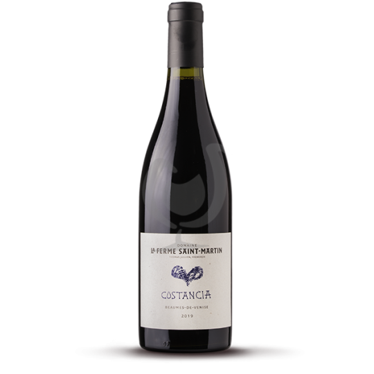 Un très beau vin rouge du sud de la vallée du Rhône dominé au nez par les épices, tels que la girofle et le poivre noir. On y trouve également des notes de laurier, résine, pin et fruits rouges. Bouche d’une attaque fine et élégante, un vin charnu et sensuel. Le nom de “Costancia” est gravé sur une pierre du mur de l’ancienne chapelle Saint-Martin, datant du XIIème siècle. Les vins sont élevés dans les vestiges de cette chapelle. Ces vignes ont été plantées au plus haut de l’appellation Beaumes-de-Venise, à 500 mètres d’altitude, sur des marnes et éboulis calcaires exposés sud est et sud ouest. Les sols sont travaillés mécaniquement entre les pieds de vignes, entretien d’un tapis végétal entre les rangées. 50 % Grenache - 50 % Syrah, vignes de 25 à 40 ans. Rendement : de 30 à 32hl/h. En cave l'idée est de retrouver la tension et la droiture que l’altitude amène à l’équilibre d’un vin » vinifié sans aucun ajout de produit œnologique. Récolte manuelle, tri manuel, égrappage total. Macération 21 à 28 jours, élevage 9 à 12 mois en foudre. Mise en bouteille sans sulfites, sans collage ni filtration. Peut être consommé jeune, avec un potentiel de garde de 8 à 10 ans en cave fraîche (4 à 7 ans dans une cave avec de grandes variations de températures).