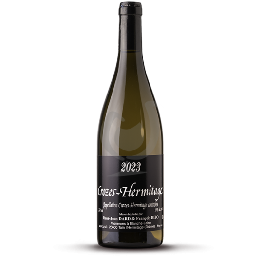 Le Crozes‑Hermitage Blanc du Domaine Dard & Ribo est une cuvée rare, née de Marsanne (≈ 90 %) et de Roussanne (≈ 10 %) provenant de vieilles vignes de la parcelle des Bâties, sur sols argileux rouges exposés sud-ouest à Mercurol, cultivées en bio et vinifiées selon une pratique naturelle sans ajout de soufre.